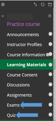 - Blackboard exams/quizzes will not require you to download any special software. Your instructor will provide instructions for the exam in Blackboard and you will access the exam at the left course navigation bar.