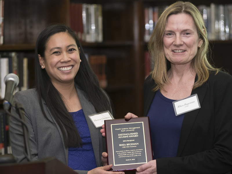 The winner of the 2018 HSM Alumni Association’s Distinguished Alumni Award is Rhea Begeman, MS '90/HSM (right).
