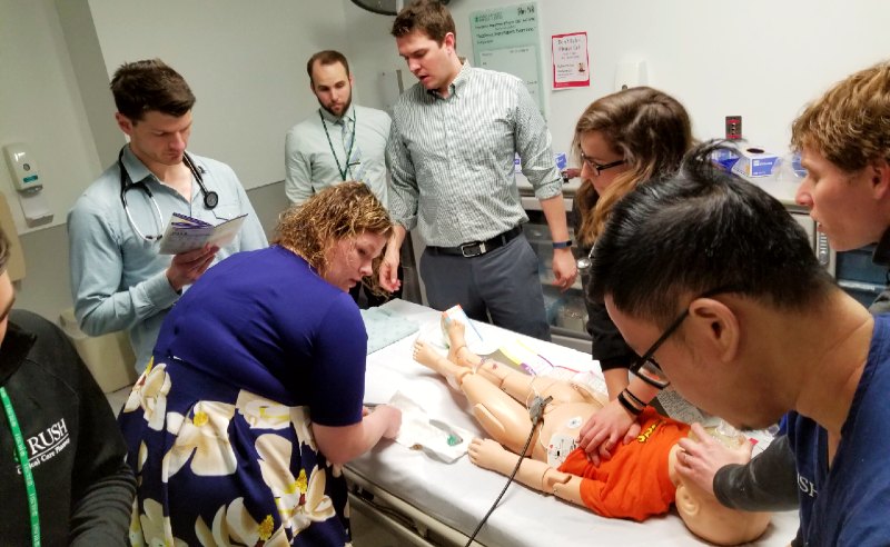 The RUSH Emergency Medicine Simulation Fellowship is operated with oversight from the RUSH EM Residency program as well as the RUSH Graduate Medical Education office. Our fellows have opportunities for involvement and further simulation exposure with the RUSH Center for Clinical Skills and Simulation, the on-site expansive simulation center at RUMC. This center has both high-fidelity and low-fidelity simulation manikins, surgical simulation, multiple high-fidelity simulation rooms with dedicated control rooms, a standardized patient education center with 12 individual exam rooms for teaching and assessment, and multiple classroom spaces. The Department of Emergency Medicine also has a satellite In-Situ Simulation center in the Emergency Department which operates with one high fidelity manikin, at many different times of day to educate interprofessional teams in the Emergency Department.