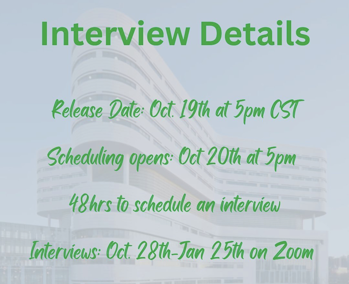 Our interview dates are from October to January and will be conducted virtually on Zoom.