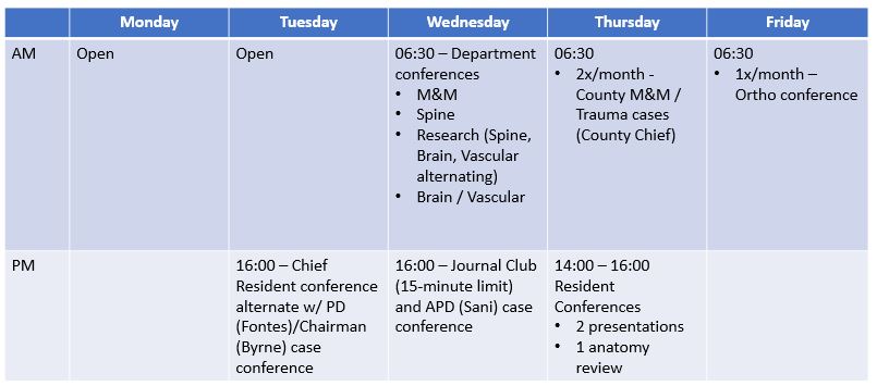 Research Conference (rotates spine, vascular, cranial/functional) Every 3rd Wednesday, 7-8 AM, Monthly