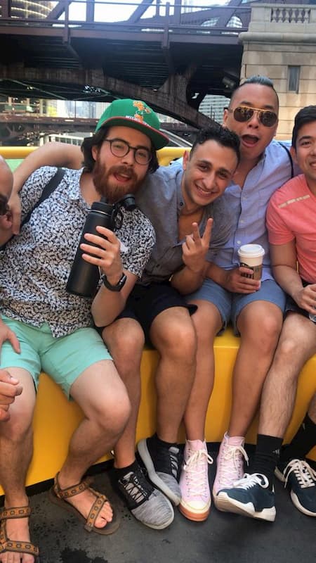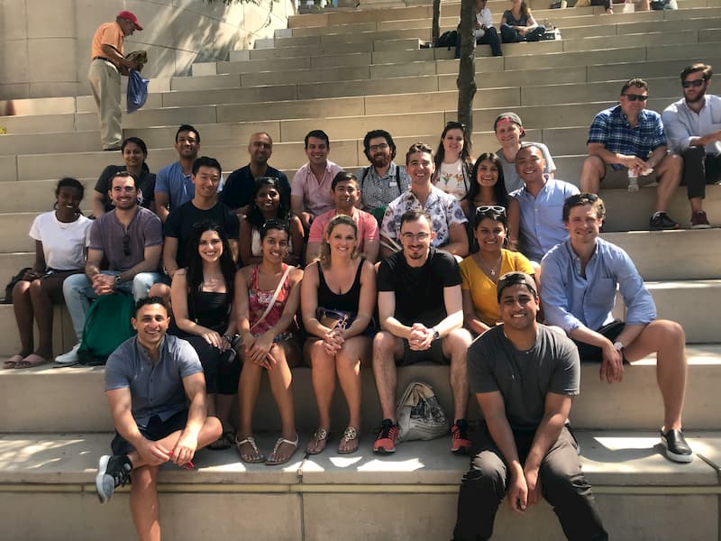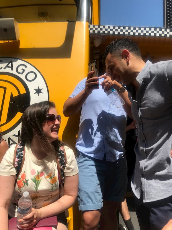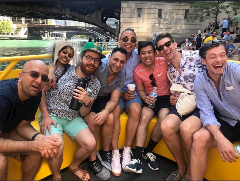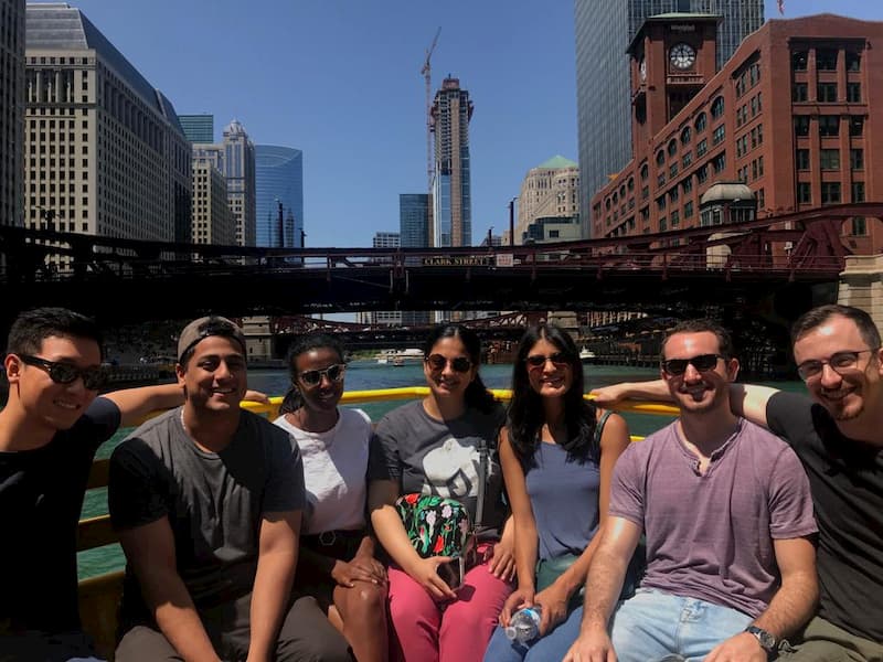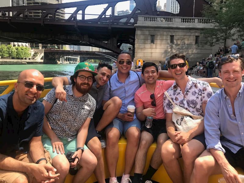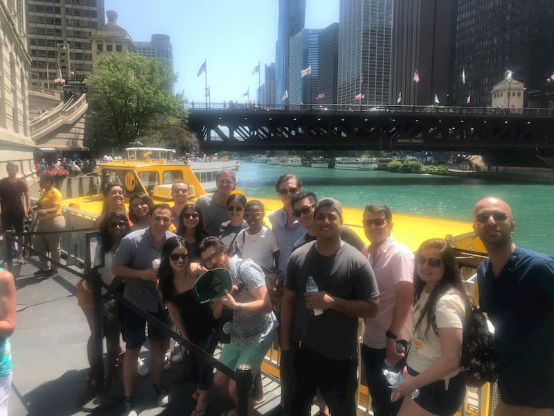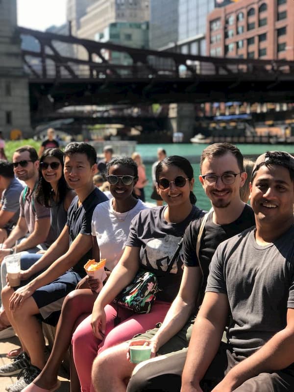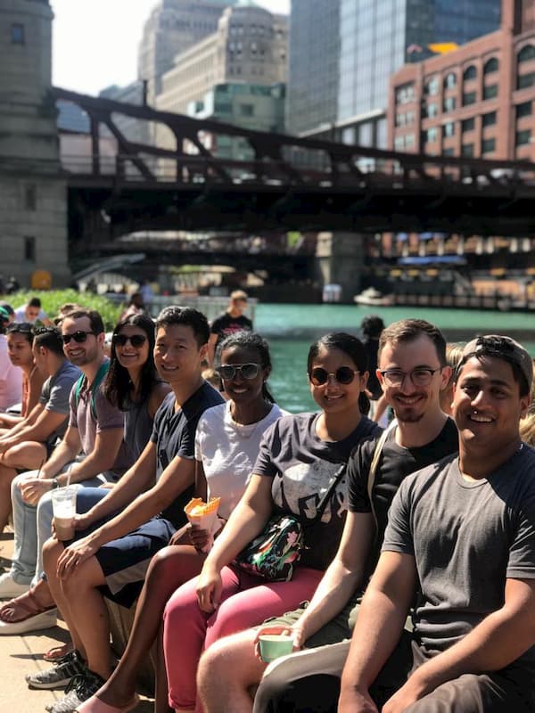 • Psychiatry residents waiting for take a Chicago River architecture cruise.