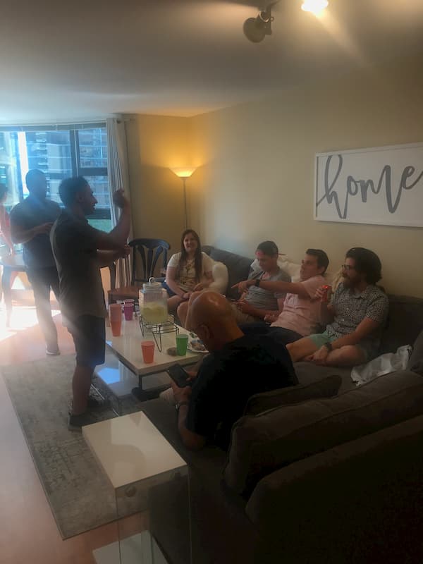 • Group photo on rooftop at night