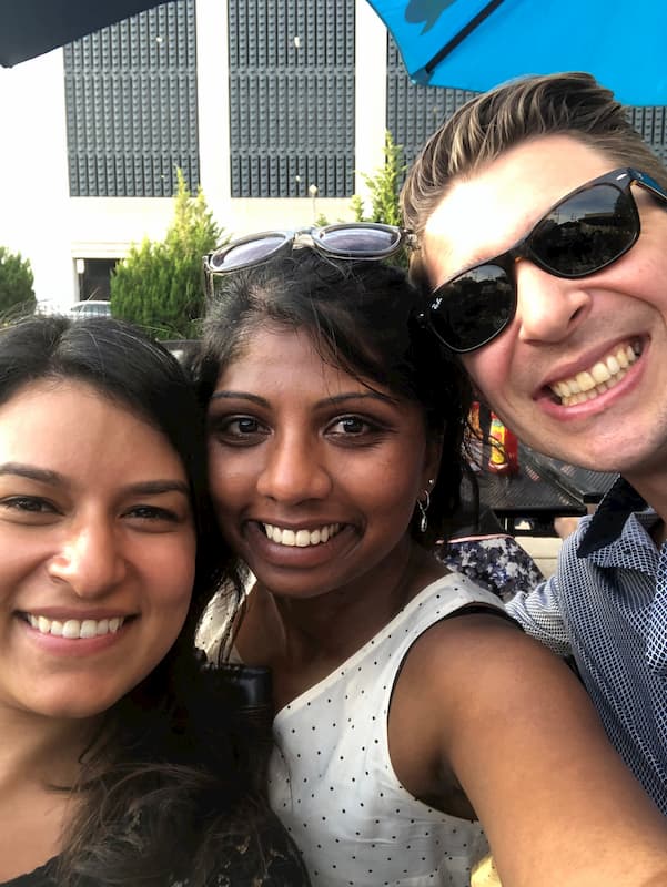 • Group photo with river and bridge in background