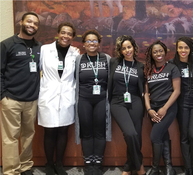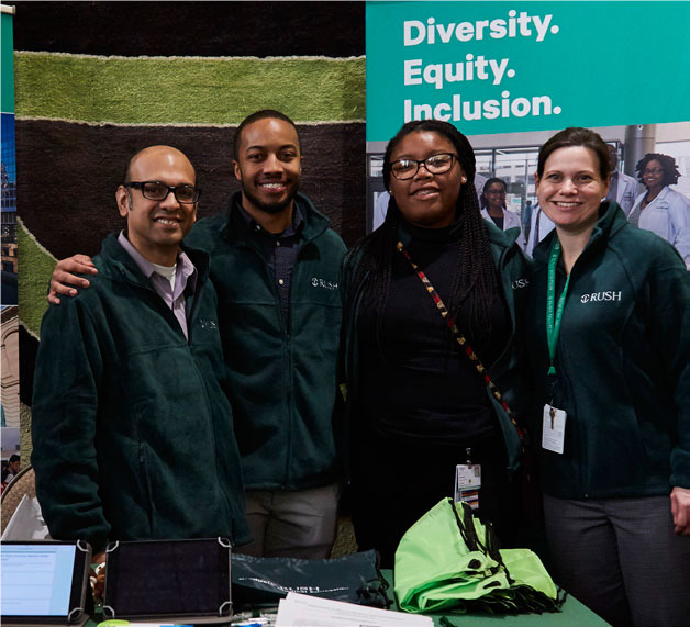 Leading by example. The Rush Diversity Leadership Council is responsible for developing and implementing Rush’s diversity strategic plan. This diverse group of leaders from across the Rush system is dedicated to ensuring that diversity is a key driver through measurable initiatives that focus on four pillars: culture of accountability, inclusion and respect; demographics; health equity; and external and community partnerships. An inclusive community of faculty, staff, residents and students are here to support you through your training and education journey at Rush. The resident-run Diversity, Equity and Inclusion Committee provides mentoring, networking, advising and professional development opportunities for residents, fellows and medical students.