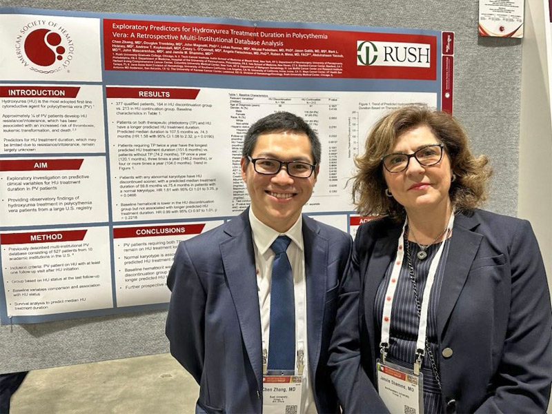 Chen Zhang, MD (incoming fellow) and Dr. Jamile Shammo in front of their poster at ASH, December 2022