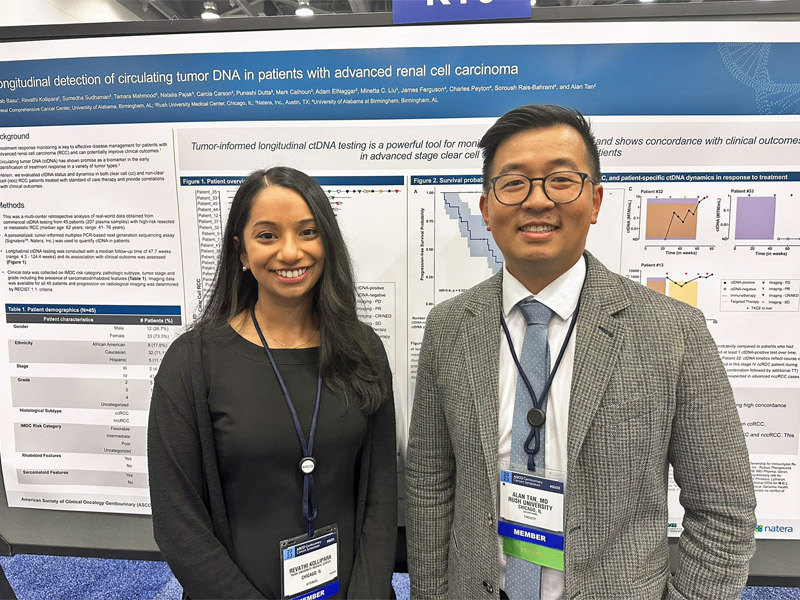 Mukti Patel, MD (Alumni-2025) and Dr. Alan Tan in front of their poster at ASCO GU Symposium, January 2024