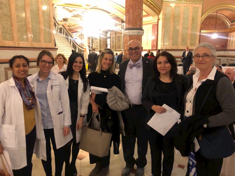 Residents have an opportunity to serve as representatives to the Illinois Psychiatric Society (IPS). Our residents, Drs. Josh Eloge and Alan Akira, won the IPS Resident of the Year Award in 2020 and 2021, respectively. Residents also have an opportunity to attend the Illinois Psychiatric Society Advocacy Day in Springfield, Illinois, residents gain exposure to how mental health laws are developed and how mental health resources are allocated. Residents have an opportunity meet with various state lawmakers to promote improved care of patients with mental health disorders, and to support the field of psychiatry.
