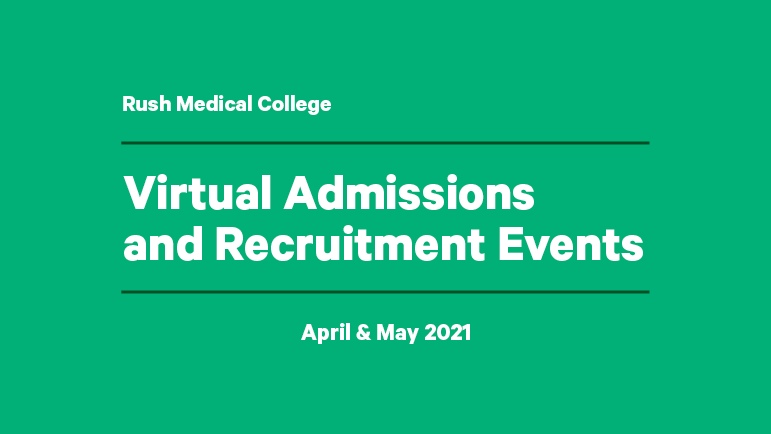 If you are interested in attending any scheduled recruitment events, please contact the event host for specific meeting information. Any other questions can be sent to RMC_Admissions@rush.edu.
