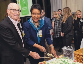 Below: HSM faculty Wayne Lerner, DrPH, FACHE, and Diane Howard, PhD, FACHE, celebrate the program’s ranking