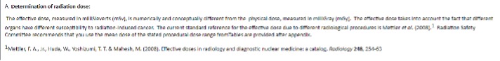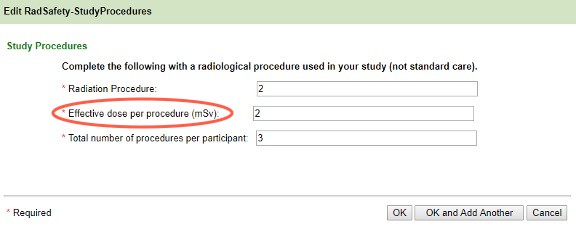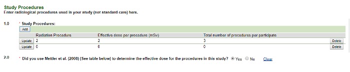 Radiation Dose Calculations are determined from the radiation dose and subject information entered. You will be asked if you accept the calculated average excess risk.