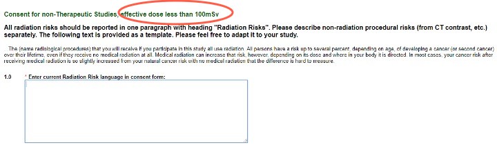 - Consent for all other studies (i.e, non-RECIST 1.1, with exposure more than 100mSv over the course of study)