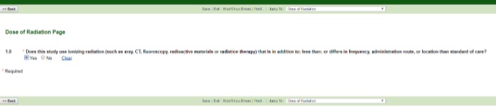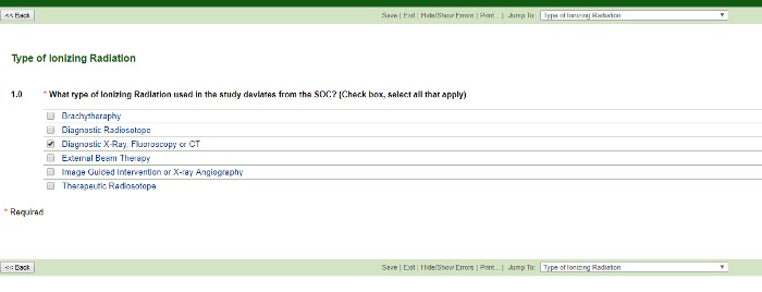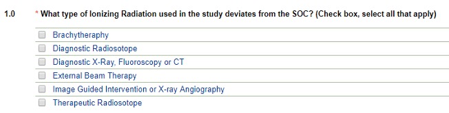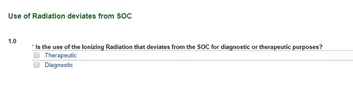 It is possible to select more than one type of ionizing radiation used in your study that deviates from the SOC. This will send you down individual pathways as above.