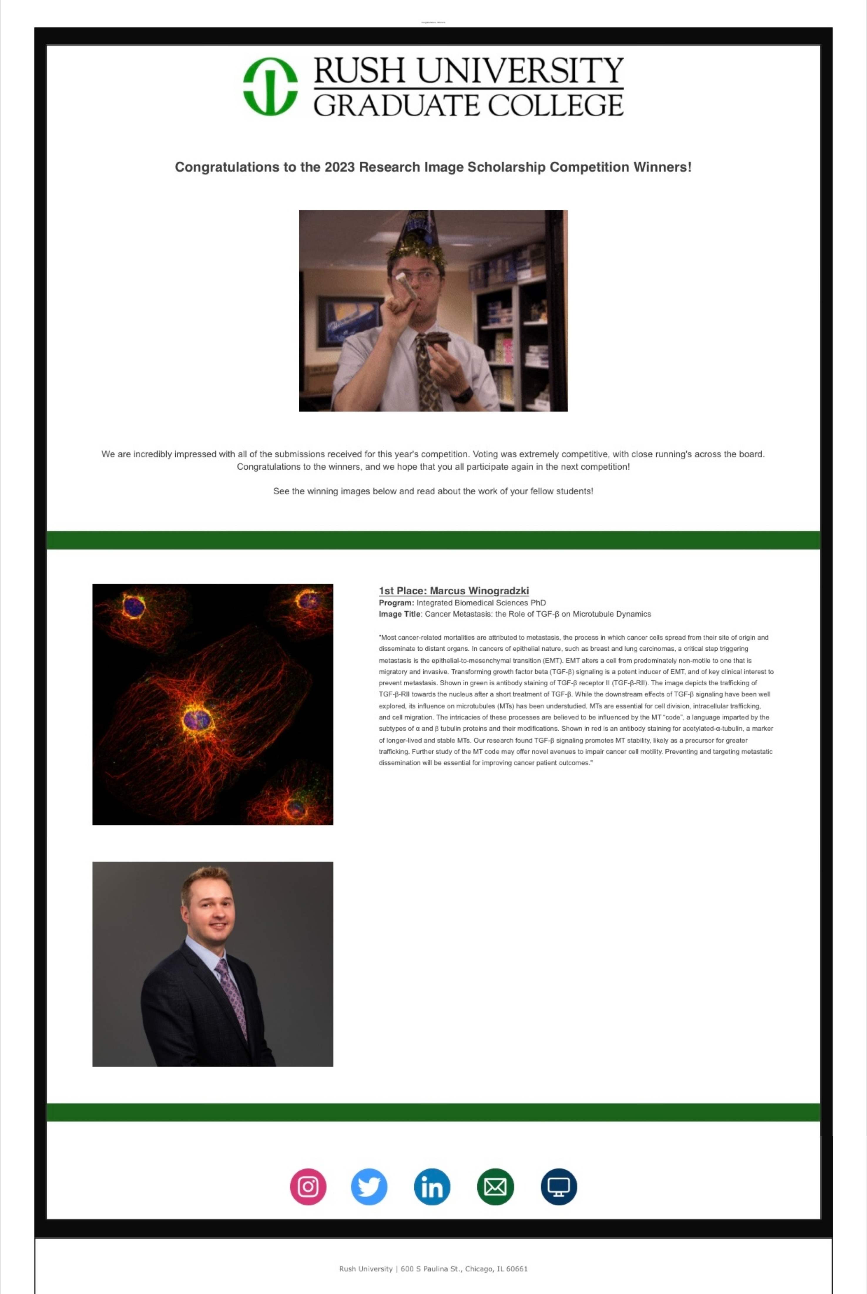 Dr. Jitesh Pratap's PhD student Marcus C Winogradzki is the 1st place winner of the 2023 Research Image Scholarship Competition. Read More.