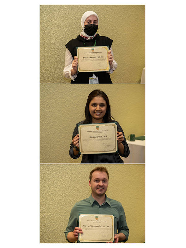 Congratulations to Delia Alkhatib (Dr. Ross lab), Shreya Patel (Dr. Pratap lab) and Marcus Winogradzki (Dr. Pratap lab) for winning the People’s Choice Awards (poster presentations) at the Trainee Research Day 2024. Read More.Image