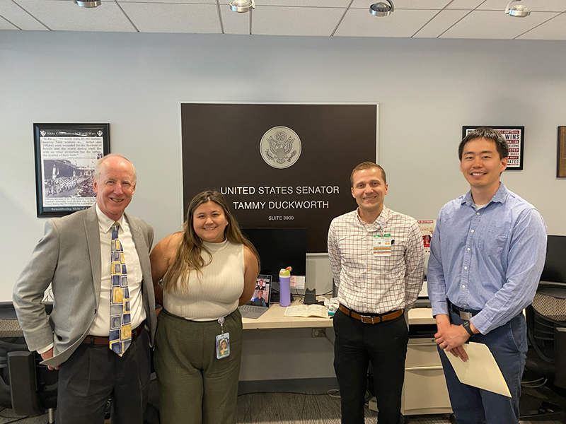 Drs. Rick Sumner, Ryan Ross and Frank Ko recently visited with Ms. Jessica Sewell, Chicago Outreach Director for Senator Tammy Duckworth (D-IL) to advocate on behalf of the American Society for Bone and Mineral Research and the Bone Health and Osteoporosis Foundation. The Rush faculty members discussed their research and the prominent role Rush plays in musculoskeletal research nationally and locally. The faculty members also discussed how support from the federal government for medical and biological research is important for improving health and as an economic driver not only for the nation in general, but also for Chicago and the state of Illinois.Image