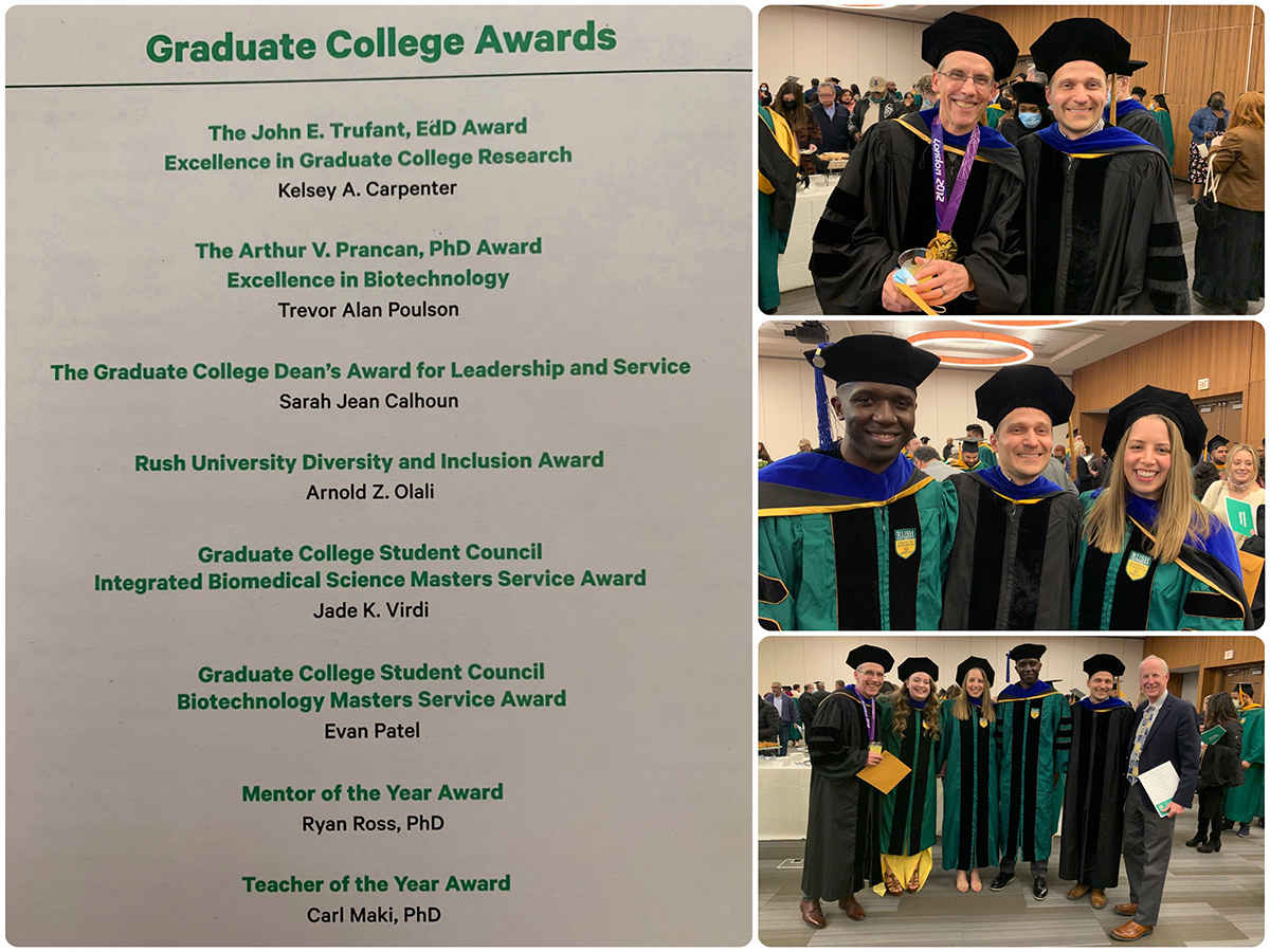 Dr. Ferrigno obtained his B.S. in education at University of Georgia and a Clinical Masters in Physical Therapy at the Medical College of Georgia. After 12 years treating patients in outpatient orthopedics, he came to Rush and obtained his PhD in Anatomy & Cell Biology in 2015, with his doctoral dissertation focused on non-surgical biomechanical treatments for knee osteoarthritis. He then performed a three-year post-doctoral fellowship in research at RUSH in the Department of Orthopedic Surgery. During this time, he also fulfilled his passion for teaching, serving as an instructor in each college at Rush through the Department of Anatomy & Cell Biology. In 2018, Dr. Ferrigno was appointed Assistant Professor in Anatomy & Cell Biology. In 2023, Dr. Ferrigno became the Director of the Human Anatomy Lab. Dr. Ferrigno has played and continues to play a major role in the teaching of medical students and other professional students at Rush. Dr. Ferrigno’s course reviews are exemplary, with quantitative ratings in the top 20% in RMC. This past year, students voted him as the keynote speaker at the Physician Assistant Graduation Ceremony because of the impact he had on his students during their first semester at RUSH. He was awarded the prestigious IDEA award after placing in the top 15% of all course reviews nationally. Qualitatively, the student remarks are notably outstanding such as this one from a first year medical student: “I know we aren’t supposed to just say nice things but I cannot say enough nice things about Dr. Ferrigno. He was the best instructor I have ever had and I loved this course.” Dr. Ferrigno is active in the American Association for Anatomy: the Body Donation Task Force (which is now a regular committee) and the Task Force for Virtual Dissection Database, both of which aim to ensure the ethical treatment of whole-body donations for education and research. We look forward to many more years of dedicated service to RUSH and our students!Faculty Accomplishments