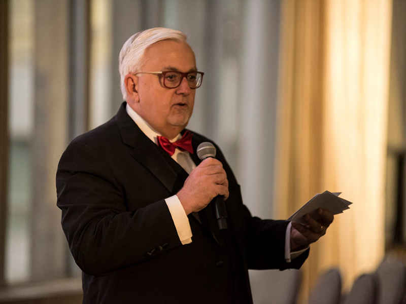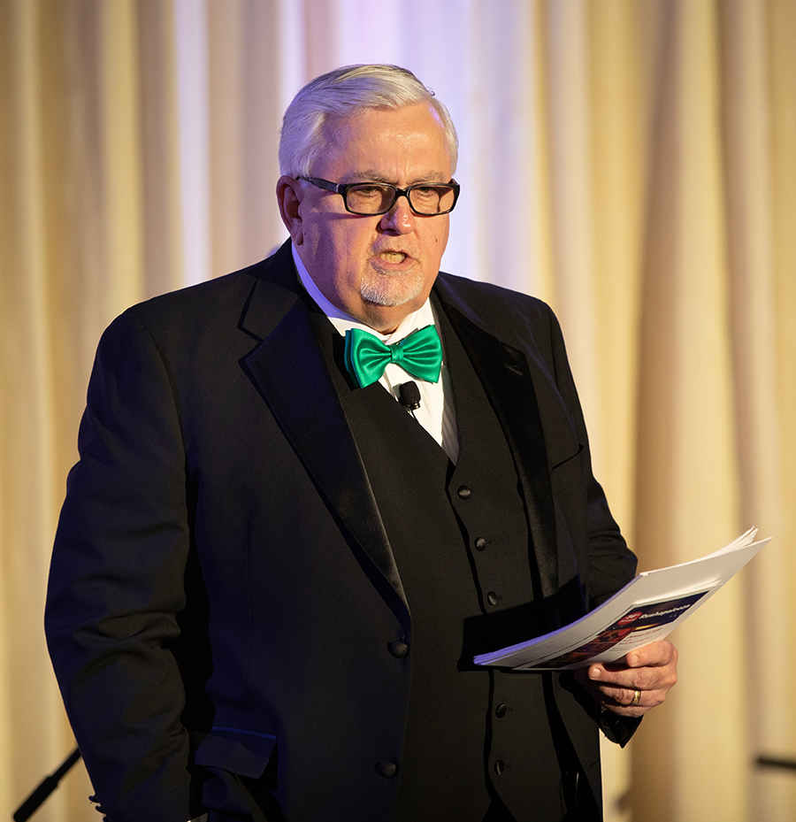 James Williams, PhD serves as master of ceremonies (again) for Rushapalooza, a celebration of performance art in the Rush community (held on Nov 1, 2017).Image
