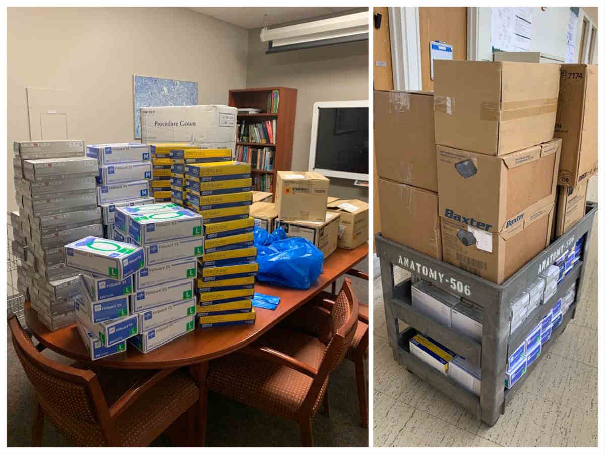A couple of the labs in the department have gotten together to make a donation of our stocks of PPE for the fight against COVID-19. Big Kudos to Jim Williams, Rylan Martin, and Meghan Moran for getting this organized. The donation included exam gloves, surgical gloves, masks, shoe covers, procedural gowns, surgical caps, surgery drapes, isolation gowns, and some other miscellaneous supplies.Trainees News