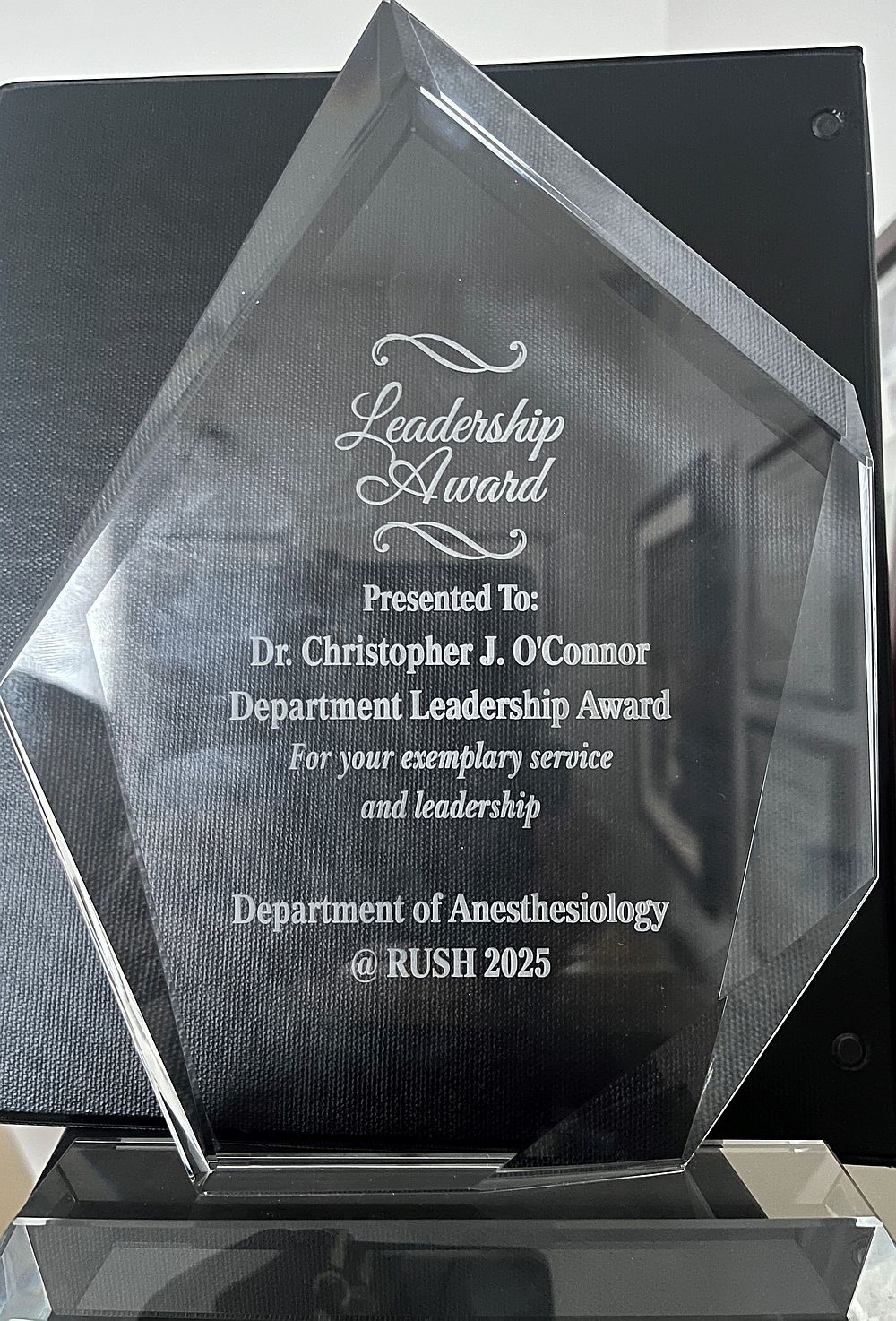 The Department of Anesthesiology Leadership Award was presented to Dr. Christopher O’Connor for his exemplary service, dedication to patient safety, and exceptional leadership.