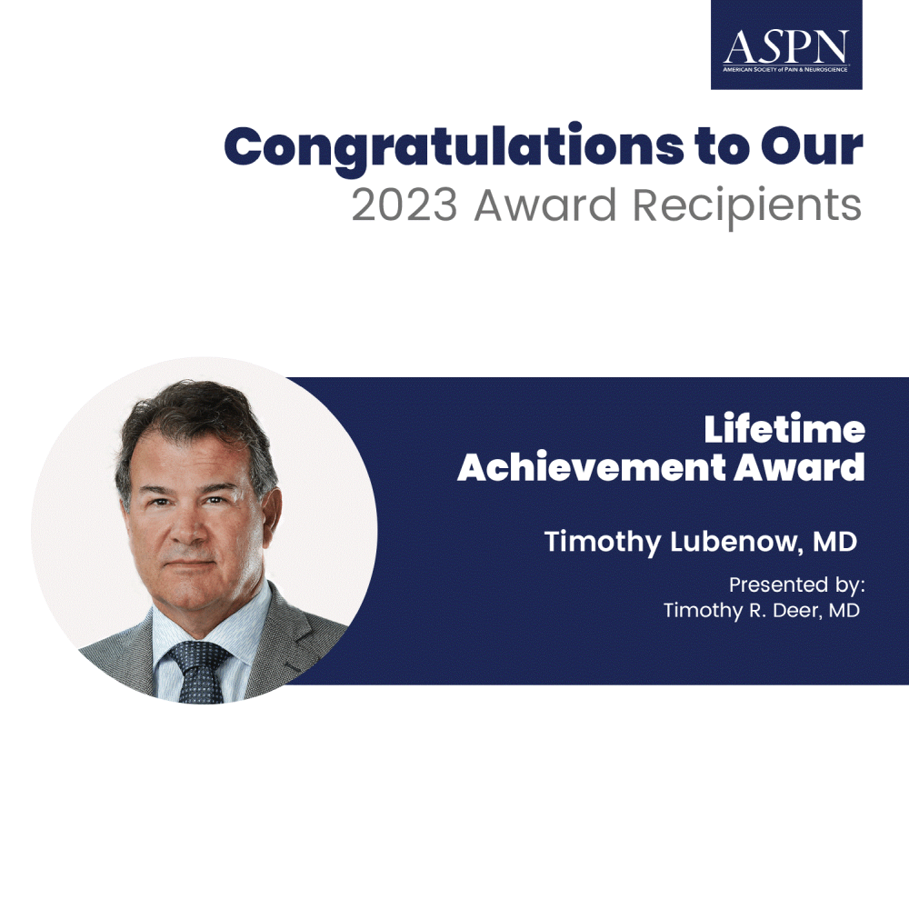 The Clinical Excellence Award was awarded to Dr. Timothy R. Lubenow, a pioneer in pain management, in recognition of his extraordinary contributions to pain medicine and patient care.