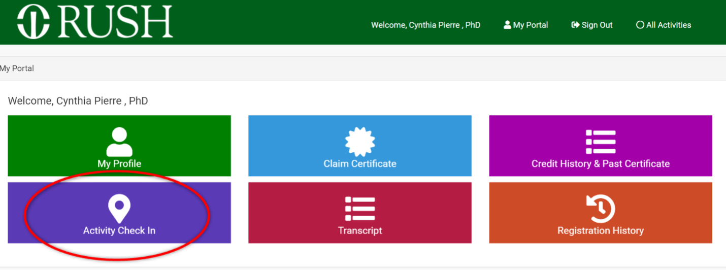 4. Click the "Activity Check In" tile.