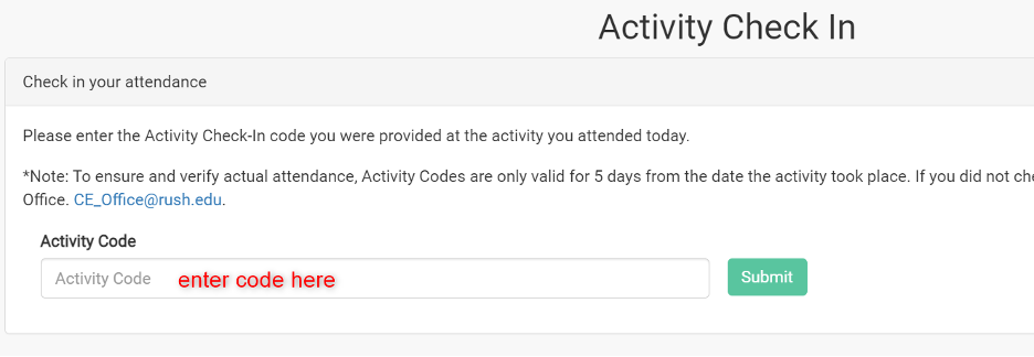 5. Enter the six (6) digit code for the event you attended, and click "Submit."