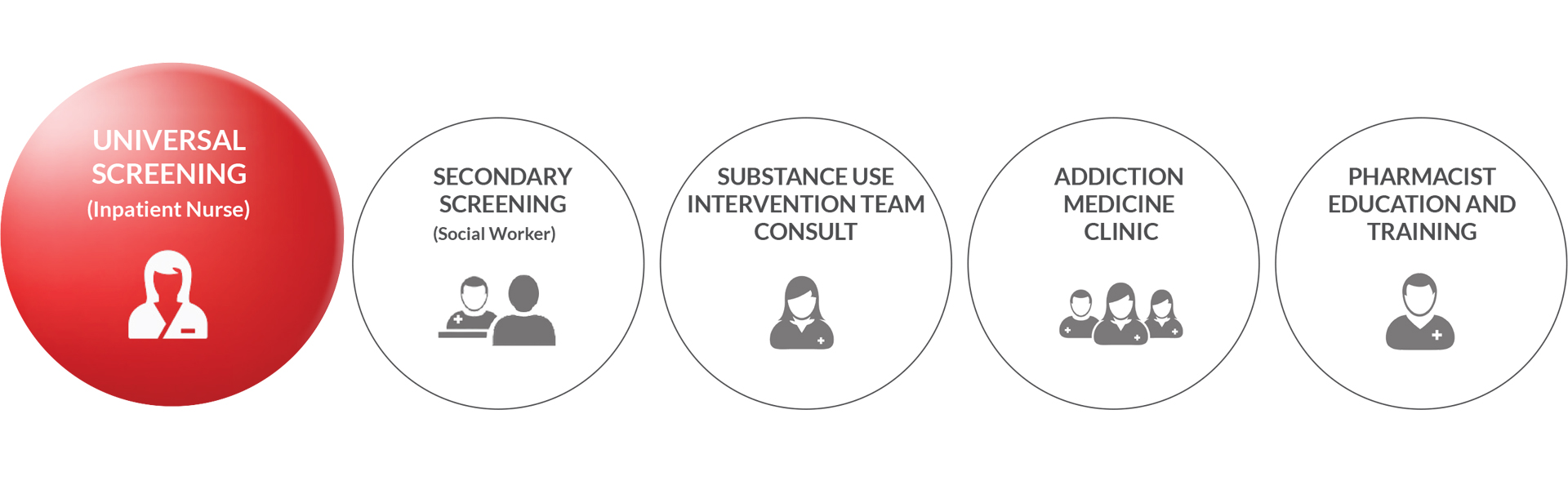 Every visit to RUSH represents an ideal opportunity to detect, assess and intervene with patients whose unhealthy substance use puts them at risk for further medical consequences. Every patient who presents to RUSH is screened for potential substance use concerns.