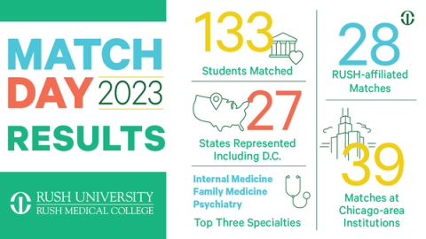 No matter if a student matched in Chicago, Indiana or across the country, they will carry the Rush mission and vision with them. The devotion to service and bettering health outcomes extends far beyond the walls of Rush on the West Side of Chicago and extends into every patient room, operating room or community clinic that a Rush grad calls home.